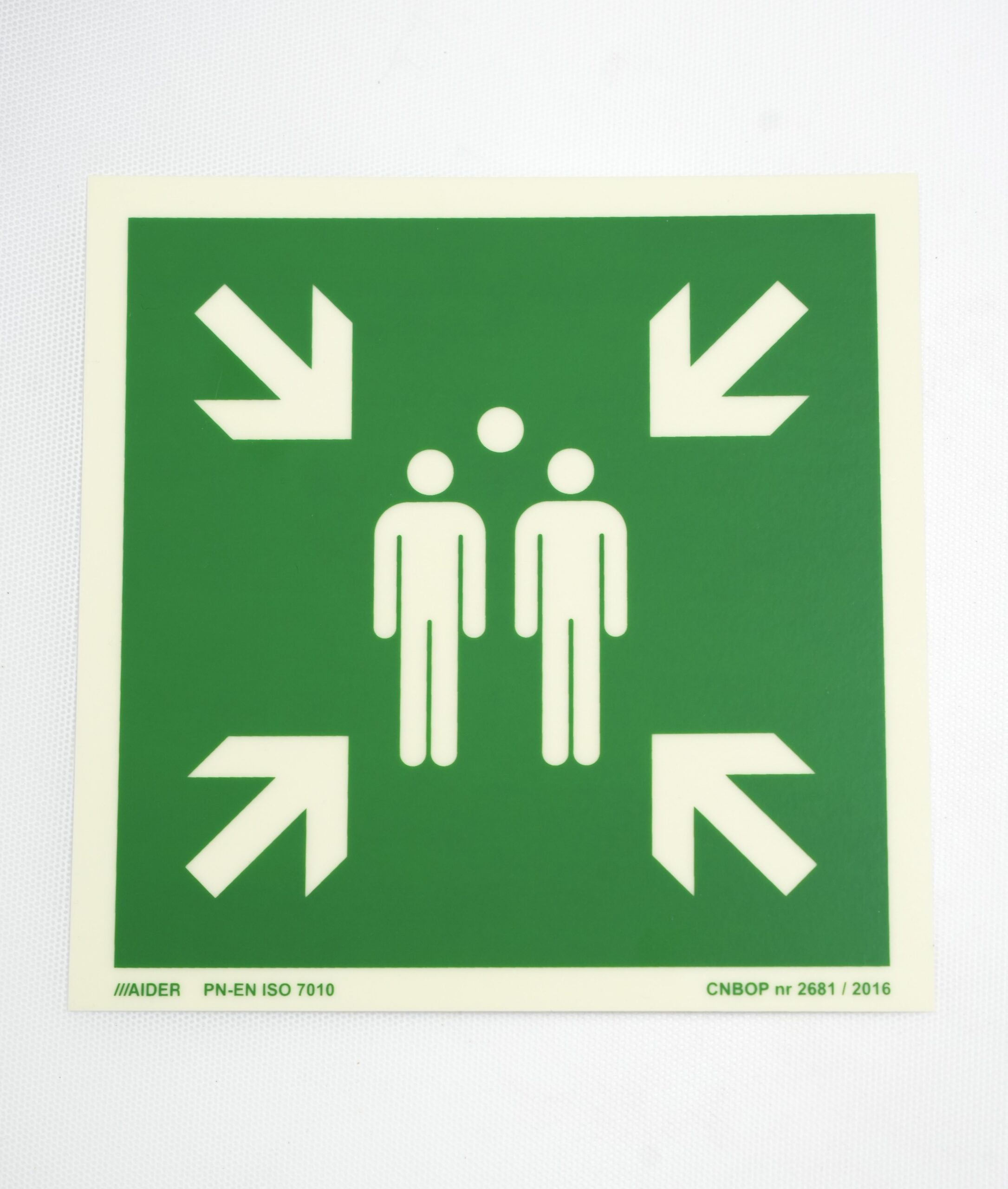 Znak ewakuacyjny AAE007 – zgodny z ISO 7010. Fotoluminescencyjny. Trwały, wysoko widoczny, łatwy w montażu.